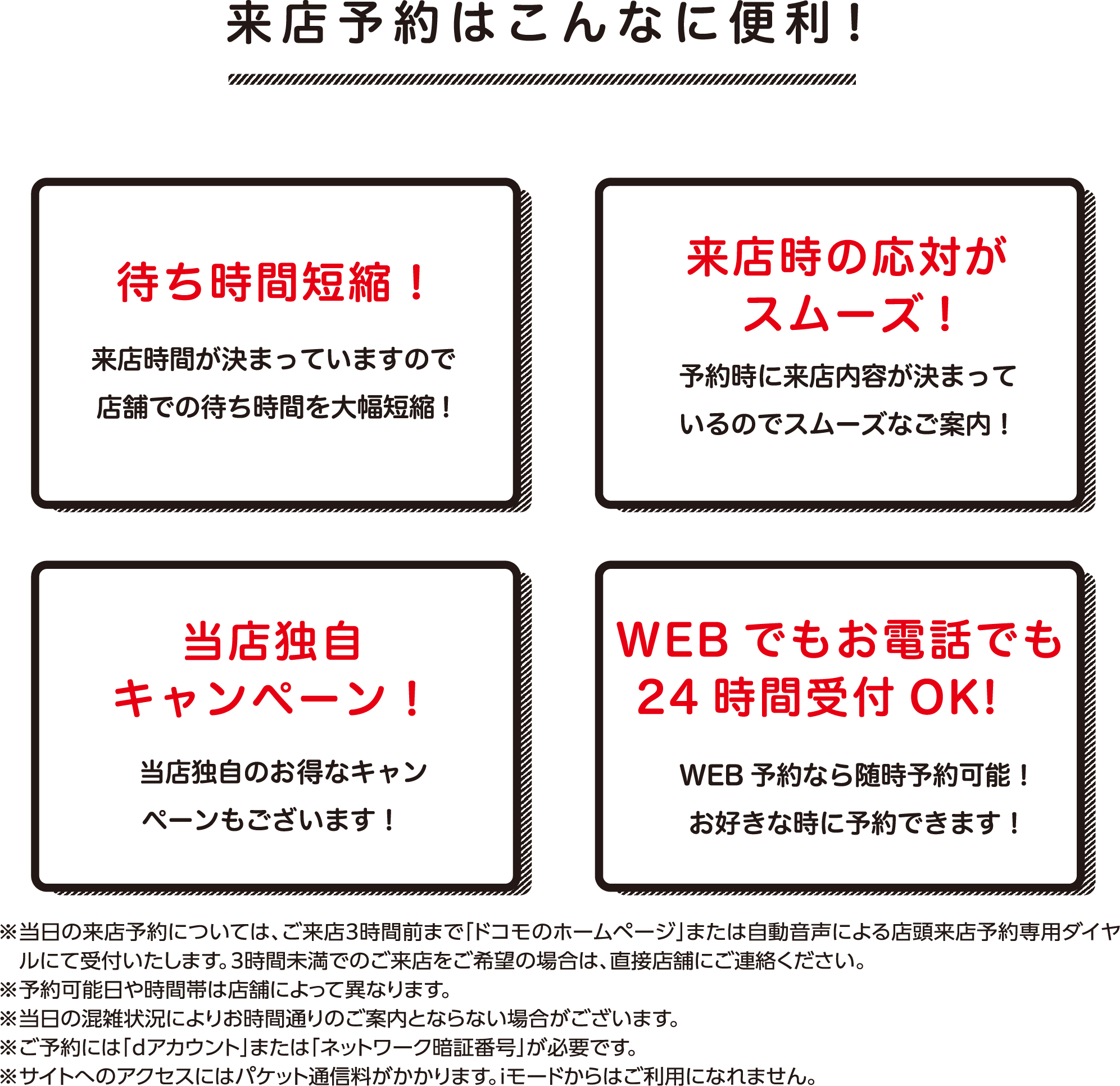 WEBからの来店予約には「dアカウント」が必要になります。 dアカウントが不明な方はお電話でご予約下さい!